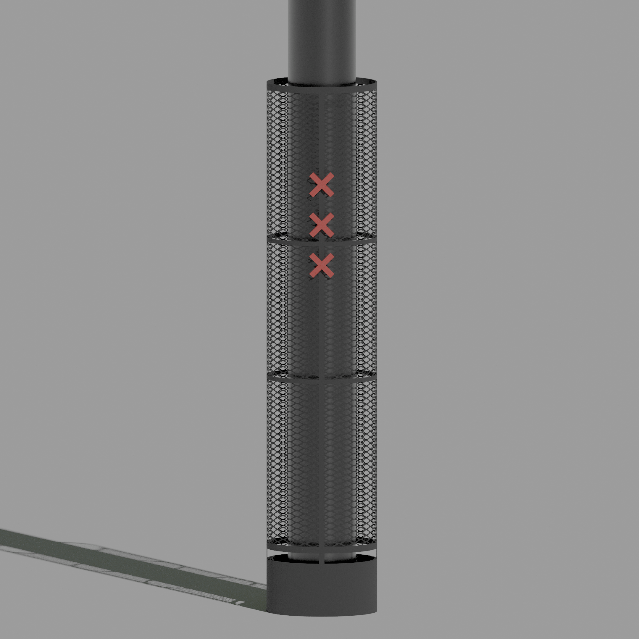 Door de slanke cilinder van sterk gaas groeien wintergroene klimplanten die zich snel ontwikkelen, weinig onderhoud vragen en bovendien fijnstof opvangen.